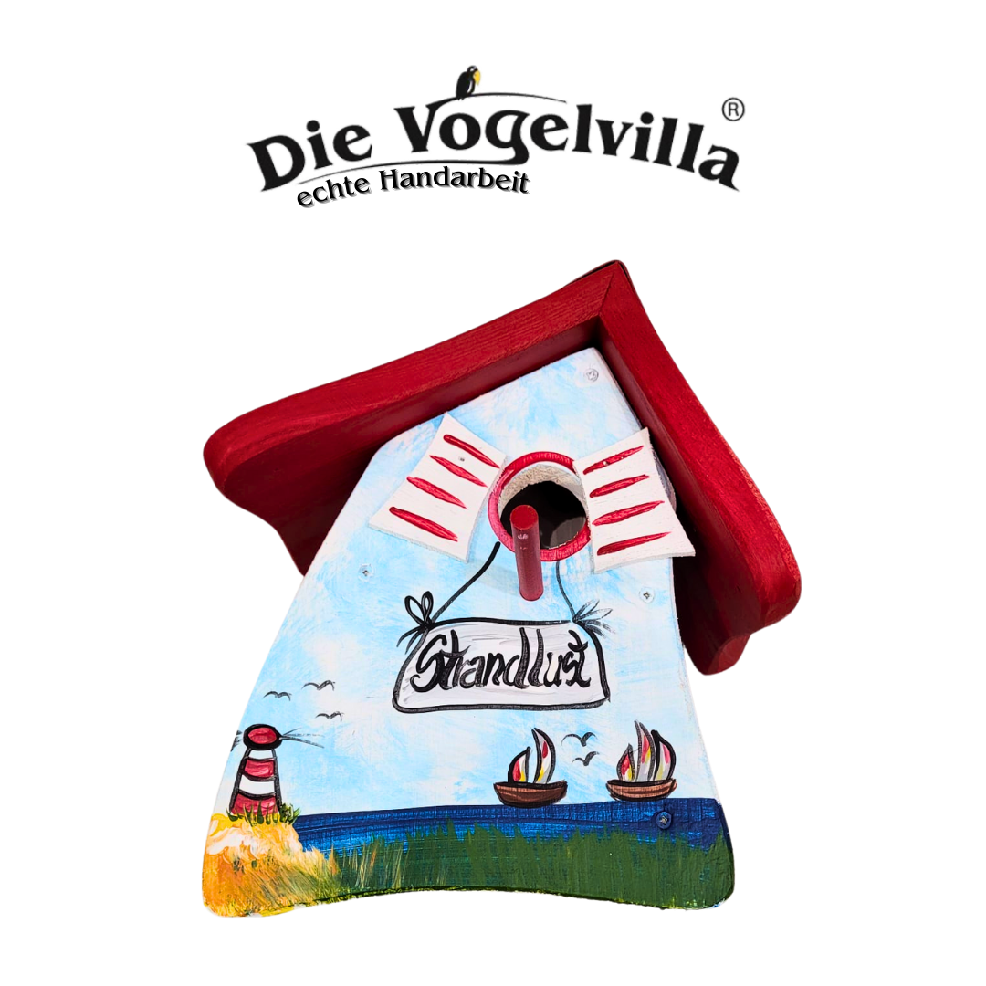 The "Nistmini Strandlust" nesting box combines functionality and nautical charm. Perfect for smaller gardens or balconies, it offers birds a protected nesting place while also adding a decorative touch. Crafted from sustainable wood and finished with weather-resistant, bird-friendly paints, it's ideal for anyone looking to harmonize nature and design. The beach house design brings a holiday feeling to your outdoor space and invites wild birds to make their new home. A piece of "strandlust" for your garden!