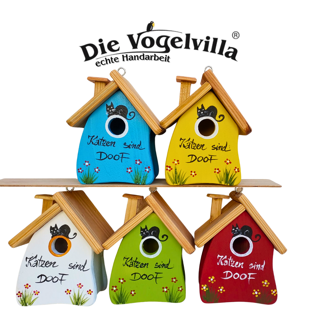 Niststube „Katzen sind doof“ – Vogelvilla Handarbeit