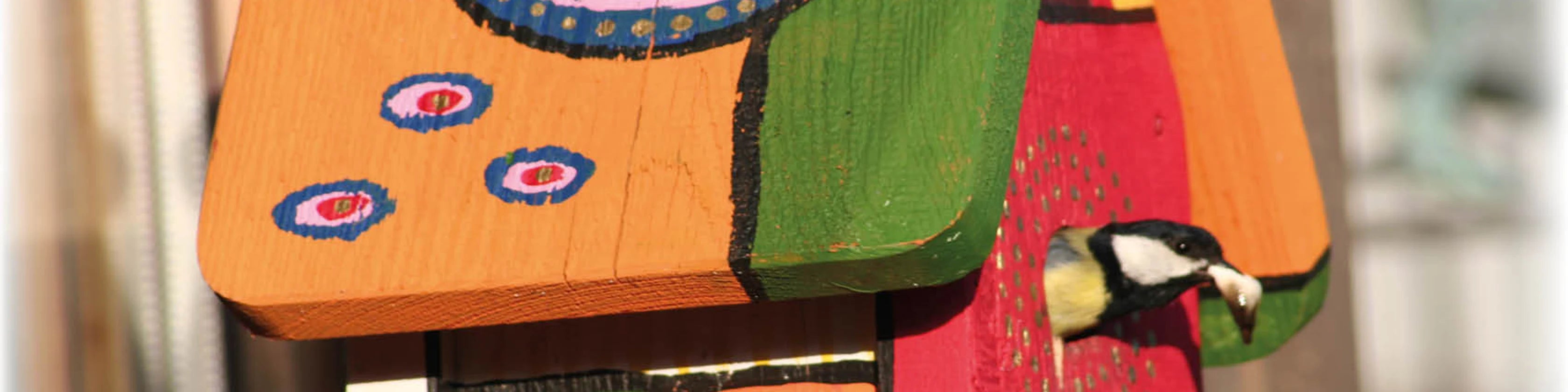Abschiedsgeschenk Kindergarten - Nistkasten mit Haken zum Aufhängen für Meise, Fink & Co.